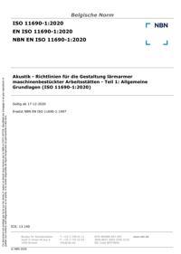 EN ISO 11690-1 : Akustik - Richtlinien für die Gestaltung lärmarmer maschinenbestückter Arbeitsstätten - Teil 1: Allgemeine Grundlagen (ISO 11690-1:2020).