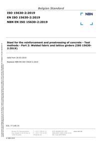 EN ISO 15630-2 : Steel for the reinforcement and prestressing of concrete - Test methods - Part 2: Welded fabric and lattice girders (ISO 15630- 2:2019).