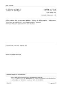 NBN B 03-003 : Déformation des structures - Valeurs limites de déformation - Bâtiments.