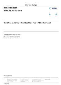 NBN EN 1026 : Fenêtres et portes - Perméabilité à l'air - Méthode d'essai.
