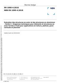 NBN EN 1090-4 : Exécution des structures en acier et des structures en aluminium - Partie 4 : Exigences techniques pour éléments et structures en acier formés à froid pour applications en toiture, plafond, paroi verticale et plancher.