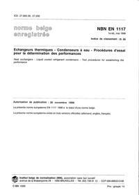 NBN EN 1117 : Echangeurs thermiques - Condenseurs à eau - Procédures d'essai pour la détermination des performances.