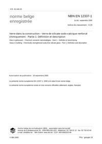 NBN EN 12337-1 : Verre dans la construction - Verre de silicate sodo-calcique renforcé chimiquement - Partie 1: Définition et description.