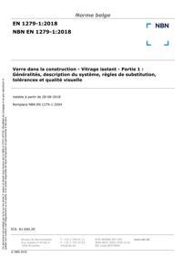 NBN EN 1279-1 : Verre dans la construction - Vitrage isolant - Partie 1 : Généralités, description du système, règles de substitution, tolérances et qualité visuelle.