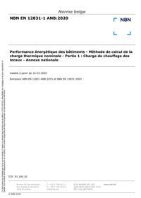 NBN EN 12831-1 ANB : Performance énergétique des bâtiments - Méthode de calcul de la charge thermique nominale - Partie 1 : Charge de chauffage des locaux - Annexe nationale.