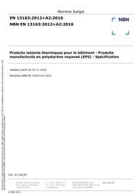 NBN EN 13163 +A2 : Produits isolants thermiques pour le bâtiment - Produits manufacturés en polystyrène expansé (EPS) - Spécification.