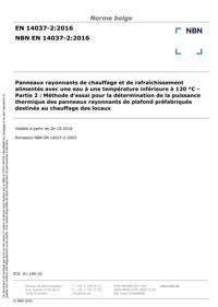 NBN EN 14037-2 : Panneaux rayonnants de chauffage et de rafraîchissement alimentés avec une eau à une température inférieure à 120 °C - Partie 2 : Méthode d'essai pour la détermination de la puissance thermique des panneaux rayonnants de plafond préfabriqués destinés au chauffage des locaux.