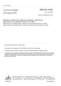 NBN EN 14246 : Eléments en plâtre pour plafonds suspendus - Définitions, spécifications et méthodes d'essai (+AC:2007).