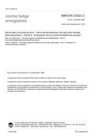 NBN EN 14321-2 : Verre dans la construction - Verre alcalinoterreux de sécurité trempé thermiquement - Partie 2: Evaluation de la conformité/Norme produit.