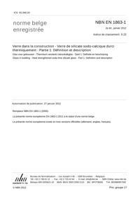 NBN EN 1863-1 : Verre dans la construction - Verre de silicate sodo-calcique durci thermiquement - Partie 1: Définition et description.