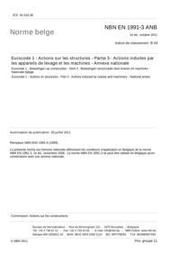NBN EN 1991-3 ANB : Eurocode 1 - Actions sur les structures - Partie 3: Actions induites par les appareils de levage et les machines - Annexe nationale.