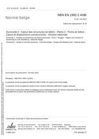 NBN EN 1992-2 ANB : Eurocode 2 : Calcul des structures en béton - Partie 2 : Ponts en béton - Calcul et dispositions constructives - Annexe nationale.