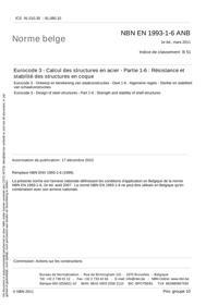NBN EN 1993-1-6 ANB : Eurocode 3 - Calcul des structures en acier - Partie 1-6 : Résistance et stabilité des structures en coque.