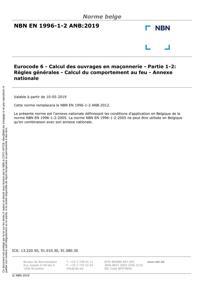 NBN EN 1996-1-2 ANB:2019 : Eurocode 6 - Calcul des ouvrages en maçonnerie - Partie 1-2: Règles générales - Calcul du comportement au feu - Annexe nationale.