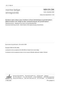 NBN EN 299 : Gicleurs sans retour pour brûleurs à fioul domestique à pulvérisation - Détermination de l'angle et des caractéristiques de pulvérisation.