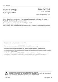 NBN EN 572-9 : Verre dans la construction - Verre de silicate sodo-calcique de base - Partie 9: Evaluation de la conformité.