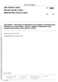 NBN EN ISO 10140-1 : Acoustique - Mesurage en laboratoire de l'isolation acoustique des éléments de construction - Partie 1: Règles d'application pour produits particuliers (ISO 10140-1:2021).