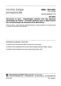 NBN ISO 6891 : Structures en bois - Assemblages réalisés avec des éléments mécaniques de fixation - Principes généraux pour la détermination des caractéristiques de résistance et de déformation (EN 26891).
