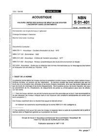 NBN S 01-401 : Acoustique - Valeurs limites des niveaux de bruit en vue d'éviter l'inconfort dans les bâtiments.