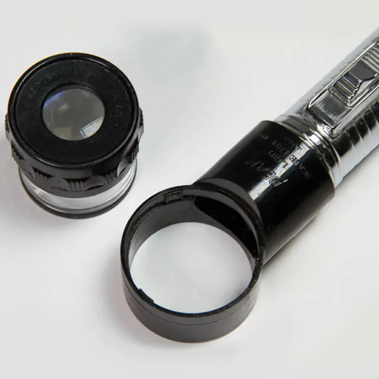 Petite lentille très grossissante, dans un boîtier, au travers de laquelle on peut observer une graduation (également agrandie).