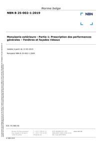 NBN B 25-002-1 : Menuiserie extérieure - Partie 1: Prescription des performances générales - Fenêtres et façades rideaux.