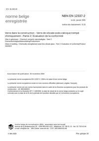 NBN EN 12337-2 : Verre dans la construction - Verre de silicate sodo-calcique trempé chimiquement - Partie 2: Evaluation de la conformité.