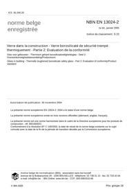 NBN EN 13024-2 : Verre dans la construction - Verre borosilicaté de sécurité trempé thermiquement - Partie 2: Evaluation de la conformité.