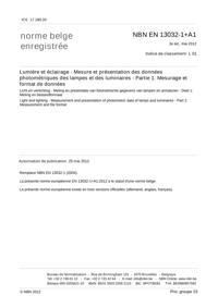 NBN EN 13032-1 +A1 : Lumière et éclairage - Mesure et présentation des données photométriques des lampes et des luminaires - Partie 1: Mesurage et format de données.