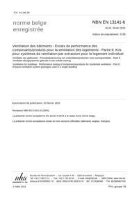 NBN EN 13141-6 : Ventilation des bâtiments - Essais de performance des composants/produits pour la ventilation des logements - Partie 6: kits pour systèmes de ventilation par extraction pour le logement individuel.