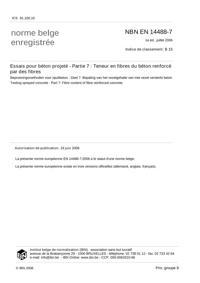 NBN EN 14488-7 : Essais pour béton projeté - Partie 7: Teneur en fibres du béton renforcé par des fibres.