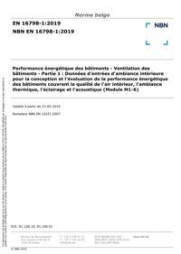 NBN EN 16798-1 : Performance énergétique des bâtiments - Ventilation des bâtiments - Partie 1 : Données d'entrées d'ambiance intérieure pour la conception et l'évaluation de la performance énergétique des bâtiments couvrant la qualité de l'air intérieur, l'ambiance thermique, l'éclairage et l'acoustique (Module M1-6).