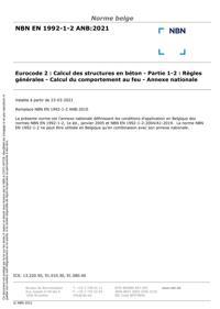 NBN EN 1992-1-2 ANB : Eurocode 2 : Calcul des structures en béton - Partie 1-2 : Règles générales - Calcul du comportement au feu - Annexe nationale.
