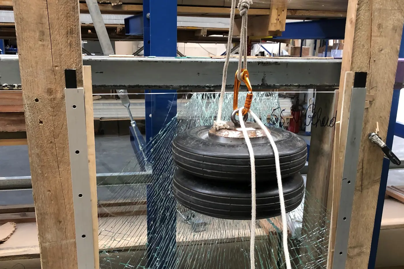 Conformément à la norme NBN B 03-004, les garde-corps en verre doivent répondre à des prescriptions spécifiques relatives à la sécurité et à l’aptitude au service. Ces prescriptions peuvent être vérifiées par calculs (charges statiques) ou par essais (charges statiques et dynamiques). Or, les entrepreneurs ont rarement la possibilité de réaliser une telle vérification.