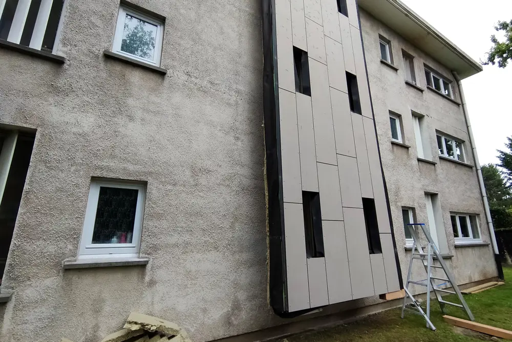Le projet Modul’Air qui associe ABC et Buildwise étudie la faisabilité d’une solution de rénovation de façade par modules préfabriqués, via la mise en place d’une approche de type 'Living lab’. Le projet concerne la rénovation d’un immeuble REZ+2 de 12 unités de logement. Le principe technique est de dédoubler l’enveloppe existante par l’extérieur au moyen de panneaux industrialisés pouvant incorporer de nombreux équipements techniques dont les systèmes de ventilation, installés hors site. La solution offre une accélération de la phase chantier et une réduction des nuisances pour les habitants (moins d’interventions du côté intérieur, rapidité d’exécution, …), tout en offrant une qualité d’exécution accrue et une réponse globale à différents problèmes existants.