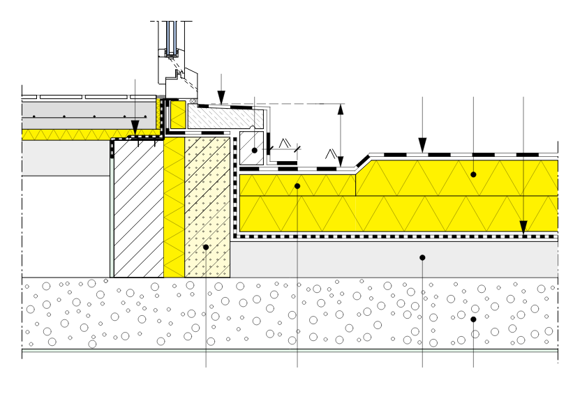 Dit detail kan worden toegepast wanneer een nuttige opstandhoogte van 150 mm niet haalbaar is, omwille van de isolatiedikten bij renovatie.