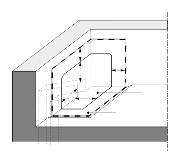 Indien de plakplaat even hoog is als de muur, moet de extra strook hier volledig over doorgetrokken worden. Bij hogere muren moet de onderlaag of de extra strook hoger komen dan de plakplaat, zodanig dat deze laatste door de twee afdichtingslagen (onder- en bovenaan) zou ingesloten worden.