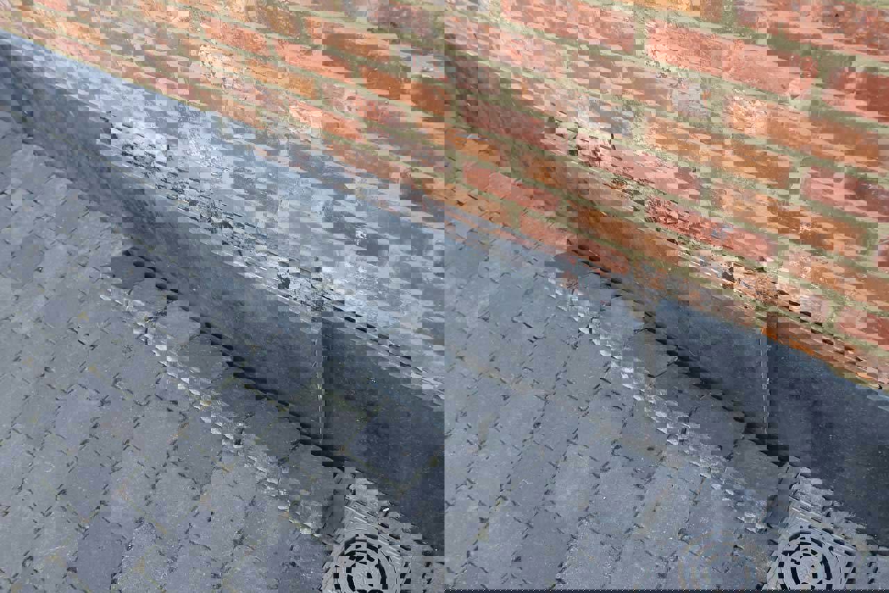 Wanneer er een plint uit natuursteen aan de gevelvoet voorzien is, dan moet er boven de plint een spouwdrainering aangebracht worden om het eventueel aanwezige spouwwater naar buiten af te voeren.