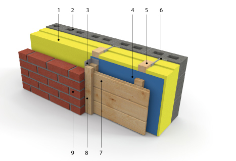 Bij de aansluiting op een houten bebording dient men steeds een voldoende grote opening te laten tussen de gevelbekleding en de aanpalende constructie om de ventilatie en de droging van het hout veilig te stellen (zie TV 243). Om de waterdichtheid te waarborgen, dient men op deze plaatsen tevens voldoende aandacht te besteden aan de correcte uitvoering van het regenscherm. De zijdelingse aansluiting tussen een houten gevelbekleding en een muur uit metselwerk gebeurt met behulp van een stijf profiel (uit corrosiebestendig metaal of een stijve kunststof, zie afbeelding 47).