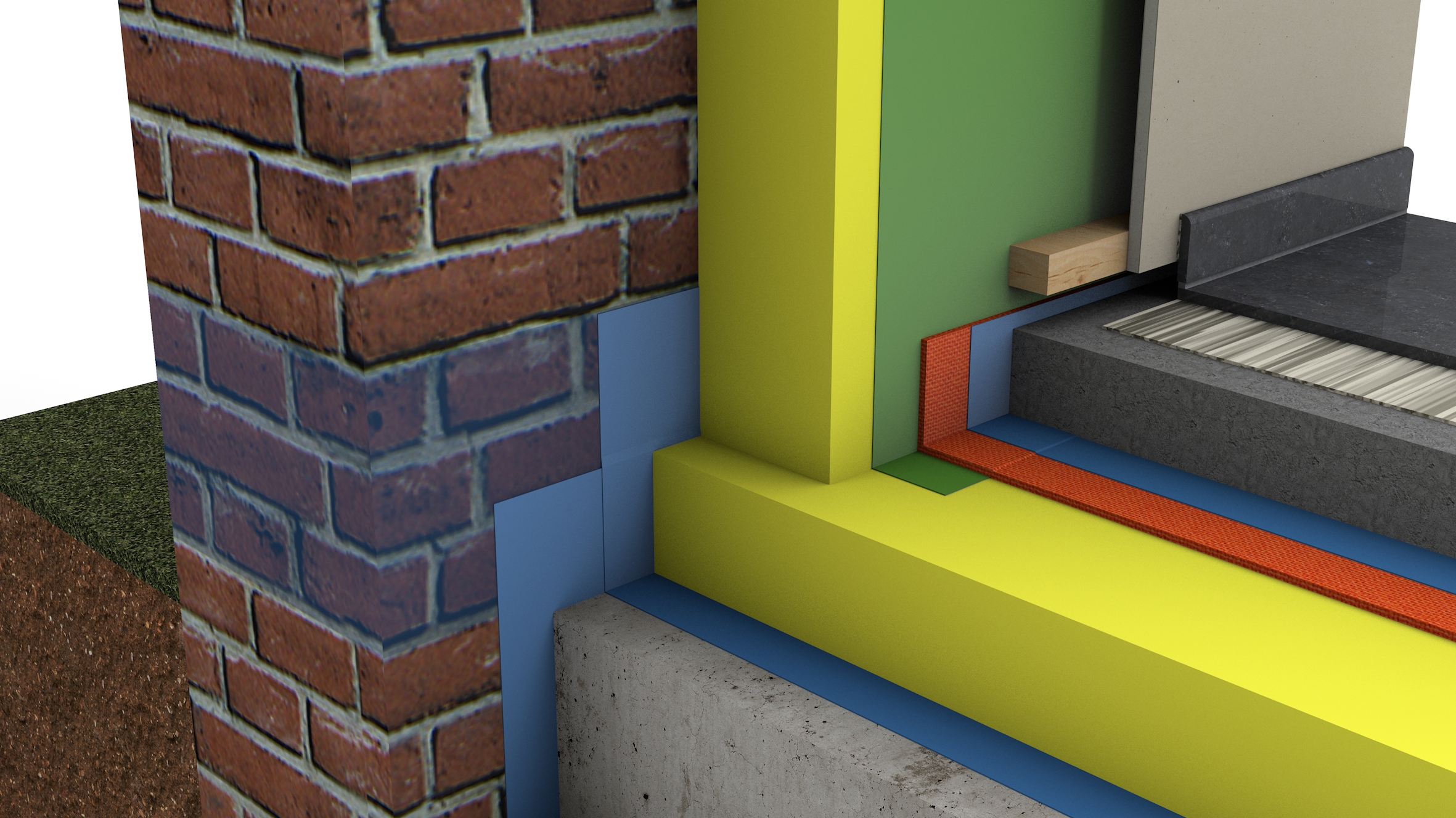 - de barrière tegen vocht onder de dekvloer mag niet afgesneden worden ter hoogte van de vloer. Ze moet 5 cm doorlopen om in een later stadium de luchtdichte aansluiting tussen de vloer en de muur te kunnen waarborgen. In tussentijd kan het membraan omgeplooid worden en bewaard worden als wachtfolie onder de voorlopige vloerafwerking. Men moet ervoor zorgen dat het membraan niet beschadigd wordt.