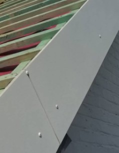 Deze fiche gaat dieper in op de uitvoering van de dakrand van een sarkingdak waarbij de bestaande dakoversteek behouden wordt. Indien men deze oplossing toepast, dan zal men aan het einde van de werken een hoge randplank verkrijgen (zie afbeelding 2). Indien men een fijnere dakrand wenst, dan dient men de dakoversteek te verzagen en de oplossingen toe te passen die beschreven staan in de fiches 2.1 (binnenisolatie van de puntgevel) of 2.2 (buitenisolatie van de puntgevel). Deze alternatieven zijn vaak arbeidsintensiever en zijn in het algemeen dus duurder.