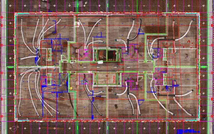 Het finale resultaat is een orthofoto (gecorrigeerd bovenaanzicht) van hoge kwaliteit die ter documentatie van de uiteindelijke gebouwde situatie kan dienen. Door de foto te schalen, kan er gemakkelijk een overlay met de bestaande CAD-plannen gemaakt worden.
