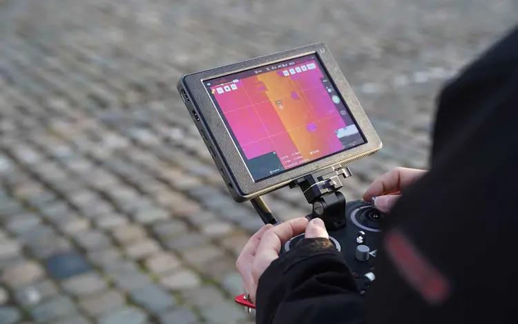 Het is mogelijk om een reeks foto’s te nemen en thermografische metingen te doen met een drone die over een gebouw vliegt. Met een camera met een krachtige zoom (bv. 30x) kunnen bovendien gedetailleerde beelden vastgelegd worden. Zodra de drone geland is, kunnen de beelden geanalyseerd en eventueel visueel geëvalueerd worden in een 3D-model.
