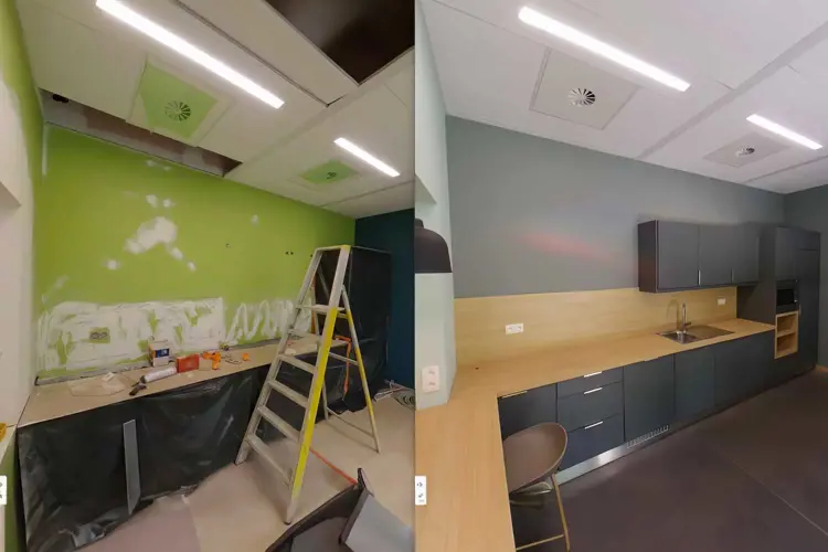 Daarnaast is het ook eenvoudig om specifieke onderdelen in detail te vergelijken aan de hand van dezelfde foto’s, zoals hier rechts gedaan werd voor een keuken.