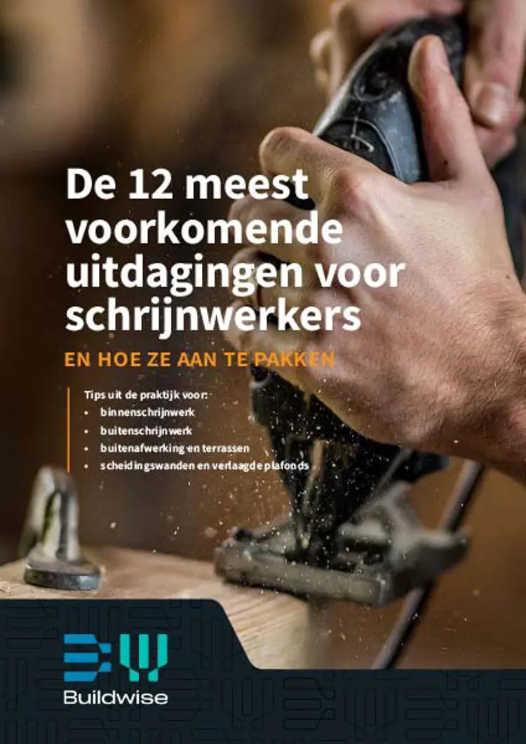 Deze digitale gids bundelt twaalf technische uitdagingen waarmee je als schrijnwerker ongetwijfeld al te maken kreeg. In vier hoofdstukken bespreken we enkele veelvoorkomende vragen en problemen bij binnen- en buitenschrijnwerk, buitenafwerking, terrassen, scheidingswanden en plafonds. Dat doen we met heldere, beknopte en praktische info, gecheckt door onafhankelijke experts. We delen kennis van bouwspecialisten voor bouwspecialisten zoals jij. Zodat jij meer tijd hebt om de handen uit de mouwen te steken.