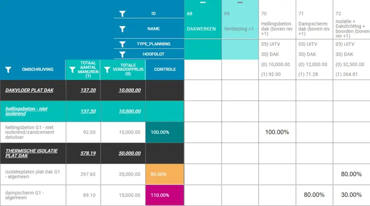 - Verdeel de meetstaatgegevens naar de structuur van de planning in de Coplaco-matrix