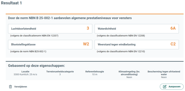 - Bepaal de aanbevolen prestatieniveaus op het vlak van luchtdoorlatendheid, wind- en waterdichtheid van vensters, volgens de norm NBN 25-002-1.