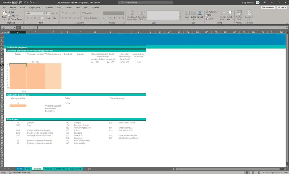 De tool die wij ter beschikking stellen, is bedoeld voor berekeningen met betrekking tot de ventilatie van stookafdelingen. Deze berekeningen worden gemaakt op basis van het vermogen, het type en het soort brandstof van de geïnstalleerde verbrandingstoestellen. De tool maakt het ook gemakkelijker om een luchttoevoerrooster te kiezen en het drukverlies van een luchtkanaal te berekenen.