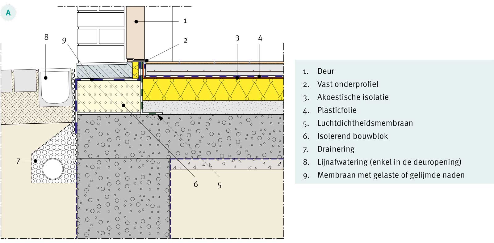 Voor meer informatie hieromtrent verwijzen we naar detail nr. 3.0 van Technische Voorlichting 264 (zie afbeelding) omtrent referentiedetails voor spouwmuren. We willen er eveneens aan herinneren dat de muurvoet zodanig ontworpen moet worden dat er geen zijdelingse waterinfiltraties kunnen optreden.