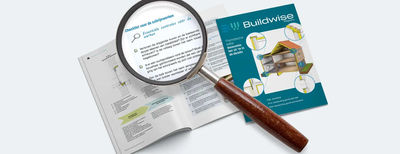 Om je te helpen deze challenge aan te gaan, reikt het thematische Buildwise Magazine 2025/1 je een aantal weldoordachte technische details, adviezen en praktische checklists aan die goed van pas kunnen komen bij de voorafgaandelijke gebouwanalyse, bij het optimaliseren van je offertes en bij de uitvoering van de details op de bouwplaats met aandacht voor de continuïteit van de thermische isolatie ter hoogte van de aansluitingen.