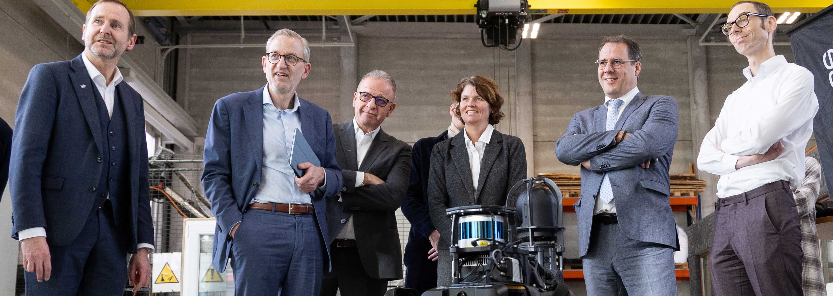 Op dinsdag 2 december bracht minister Clarinval een bezoek aan de Buildwise-vestiging in Limelette om een duidelijk beeld te krijgen van onze activiteiten op het vlak van onderzoek, innovatie en technische ondersteuning ten dienste van de bouwsector. De minister werd ontvangen in het Experience Center door voorzitter Thomas Scorier, de directie en medewerkers van Buildwise. Na een inleiding door CEO Olivier Vandooren werd het bezoek verdergezet in het demonstratiecentrum voor nieuwe technologieën en in de verschillende onderzoeks- en ontwikkelingslaboratoria, waar experts van Buildwise de diversiteit en de impact van hun werk toelichtten. De ochtend werd afgesloten met een gesprek over de samenwerking en de lopende projecten.